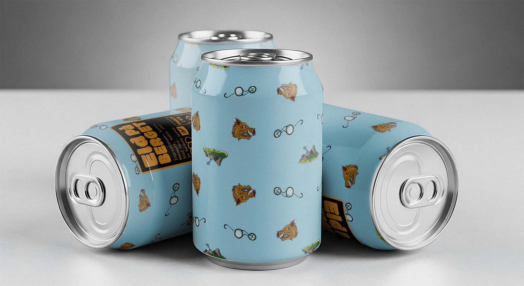 I turned these into a pattern, aiming for something that feels minimal at first glance but becomes more complex the longer you look at it. The beer's name only appears in the info section, written in orange a nod to fire, which is both the characters' lifeline and their only hope of rescue.